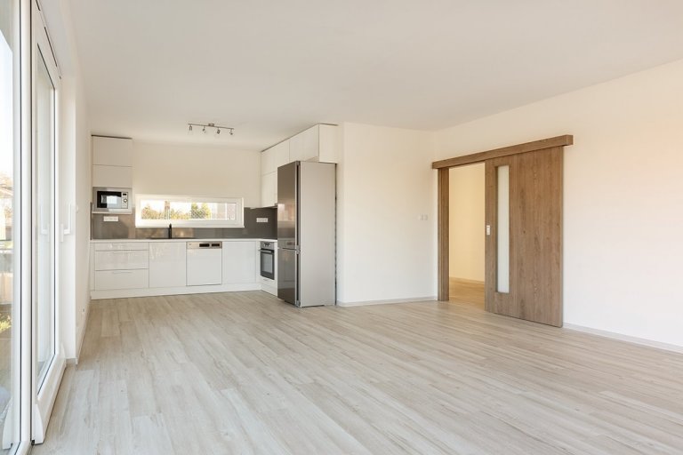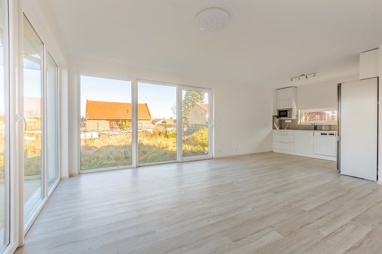Dřevostavbu Easy 113 jsme v letošním roce dokončili nedaleko naší výrobní haly v obci Obora. Dodávali jsme stavbu na klíč od projektové dokumentace, vyřízení stavebního povolení, zhotovení základové desky a inženýrských sítí včetně protlaku vodovodní přípojky pod vozovkou. Tato stavba vycházející půdorysně z oblíbené Easy 96 poskytuje díky rozšíření na 8 metrů dostatek prostoru a je možné ji stavět v provedení 3+kk či 4+kk. Majitelka zvolila v interiéru velmi příjemné přírodní barvy a díky velkým posuvným balkonovým oknům v obývacím pokoji a navazující terase, kterou si zhotovovala svépomocí po předání stavby, má užitnou plochu ještě zvětšenou.