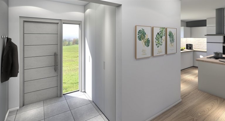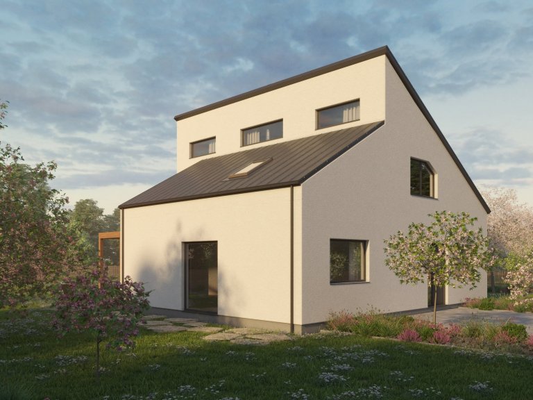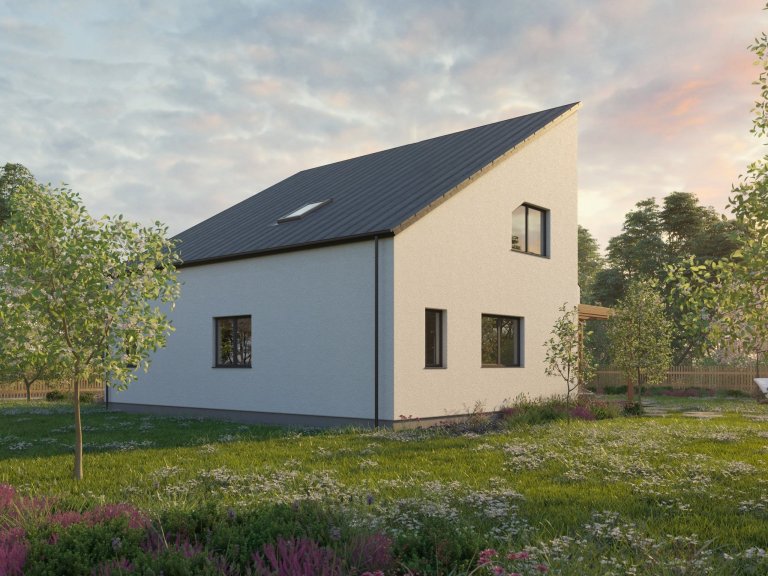 Patrová dřevostavba navržená v difuzně otevřené konstrukci. Prostorný dům je vhodný pro čtyř až pětičlennou rodinu. V přízemí se nachází velký obývací pokoj s koupelnou, ložnicí a technickými místnosti a vzhledem k vybavení přízemí dovoluje užívání pouze tohoto podlaží.