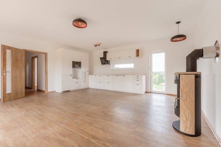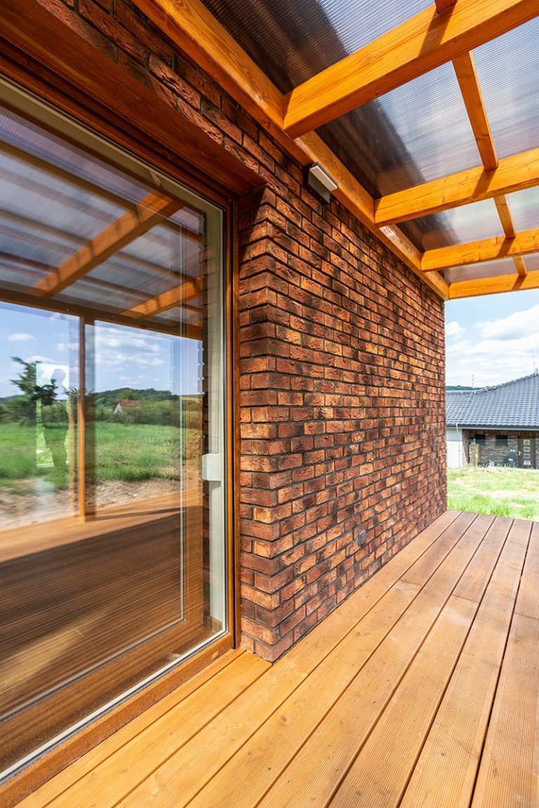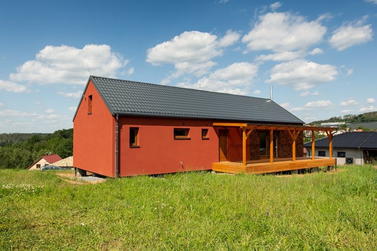 I na této stavbě jsme se řešili kompletní realizaci od projektu, vyřízení povolení, zhotovení stavby a přípojek. Z vícenákladů zde bylo zvoleno: posuvný balkonový portál, předokenní rolety, terasa s pergolou, zábradlí k balkonovým oknům, krbová kamna s nerezovým komínovým systémem, el. podlahové vytápění s centrální jednotkou, cihlový obklad, výplň dveří. Průměrná cena realizace této dřevostavby je okolo 2 600 000Kč, v tomto případě byla cena i vzhledem k velkému množství vícenákladů o trochu vyšší.