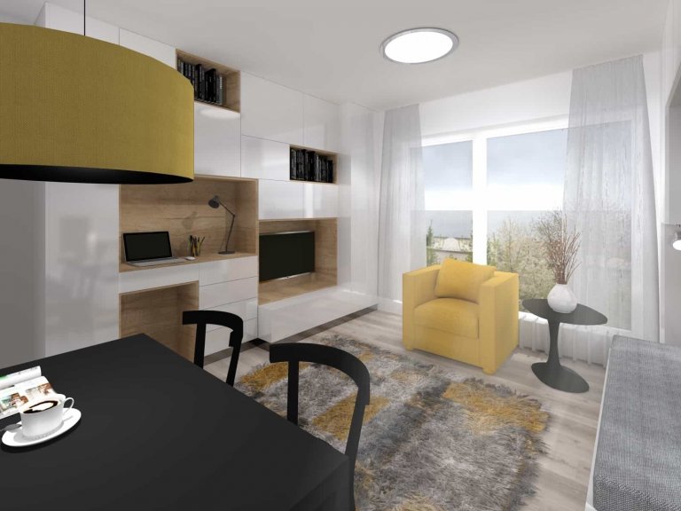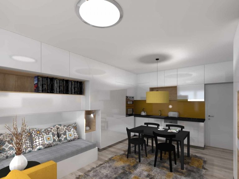Majitel této malé garsoniery se rozhodl pro rekonstrukci, aby mohl byt poskytnout k užívaní své dceři. Hlavním požadavkem slečny byl multifunkční a moderní prostor, ve kterém bude moci přijímat návštěvy, přespávat a zároveň i studovat do školy.