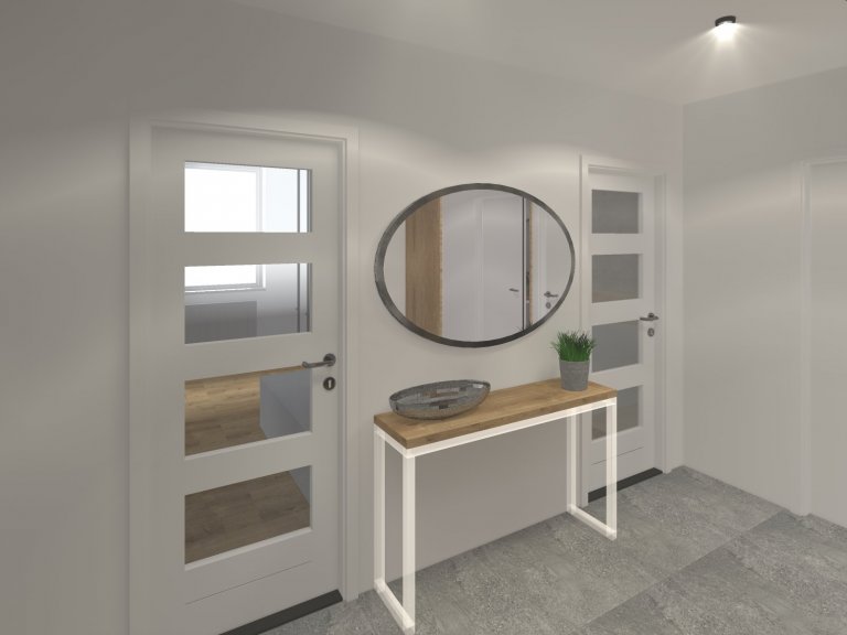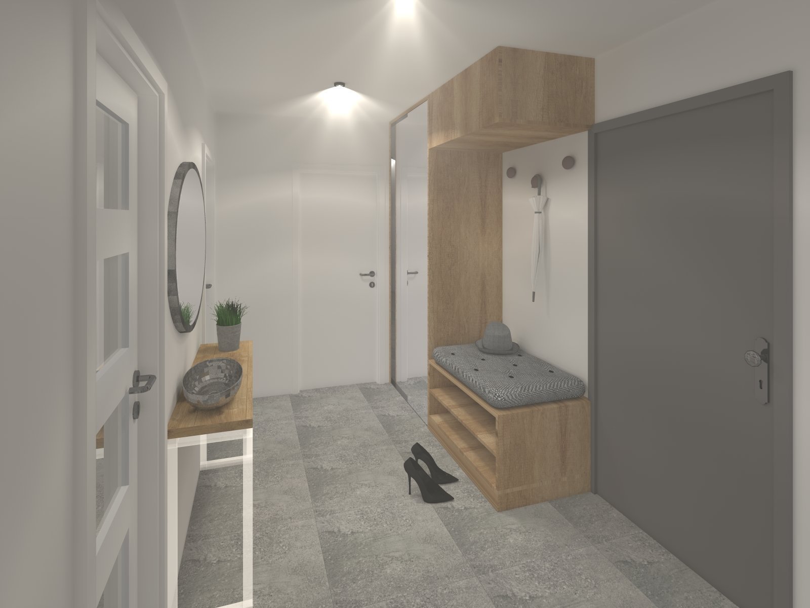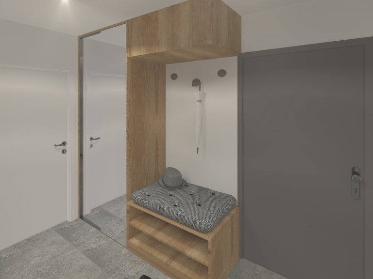 V panelovém domě ze 70. let minulého století si majitelé přáli úpravu bytového jádra. Při této příležitosti došlo i na rekonstrukci chodby tak, aby oba tyto prostory, které na sebe přímo navazují, byly v harmonii jak materiálové, tak estetické.
