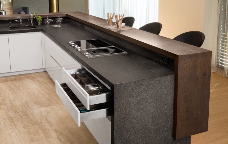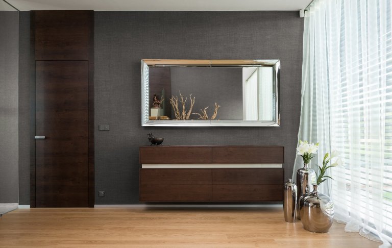 Interiér této krásné villy vsadil na hru přírodních teplých barev a výsledek je fantastický! Jde osobitý interiér pro zákazníka s vytříbeným vkusem a vysokými nároky. Klient si vybral designově nejčistší model kuchyně ELITE. Všimněte si i integrovaných dveří do obkladu stěny. Dveře do obkladu jsou aktuálně velmi žádaným prvkem do luxusních interiérů. Výzvou pro tento interiér byl i návrh jídelního stolu. Jde o ojedinělé originální řešení přímo pro tohoto zákazníka. V téměř každé místnosti se nachází nábytek od nás vyrobený na míru. Ať už jsou to celé sestavy nebo pomyslný kusový nábytek.
