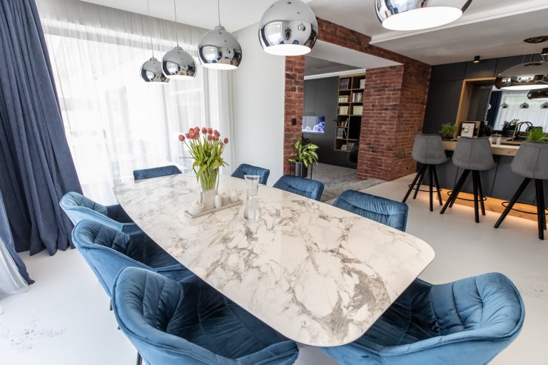 Nezvyčajná kombinácia antracitového matu s dekórom dub zlatý, ktorá bola vkusne zachovaná naprieč celým bytom (domom?), vnáša interiéru eleganciu a jemne podčiarkuje jeho industriálny nádych, no práve vďaka dreveným prvkom si stále zachováva teplo domova.