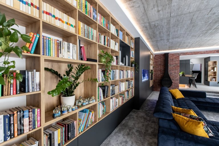 Nezvyčajná kombinácia antracitového matu s dekórom dub zlatý, ktorá bola vkusne zachovaná naprieč celým bytom (domom?), vnáša interiéru eleganciu a jemne podčiarkuje jeho industriálny nádych, no práve vďaka dreveným prvkom si stále zachováva teplo domova.