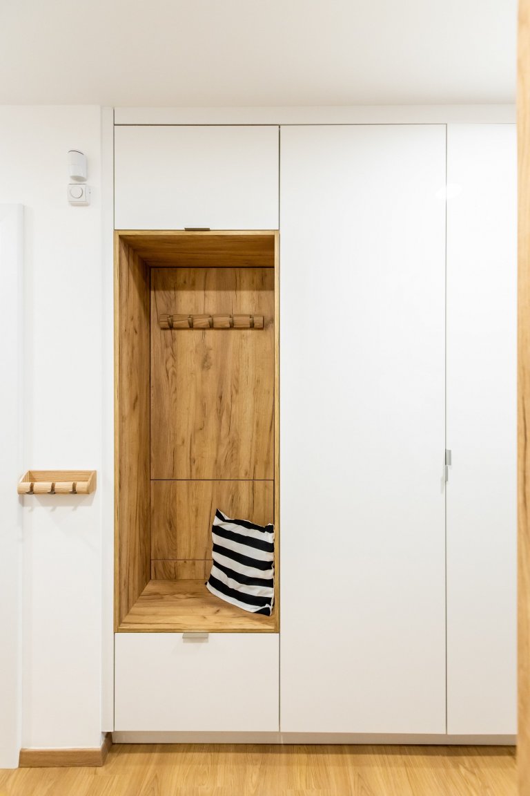 Vstavané skrine: Biely akryl vo vysokom lesku