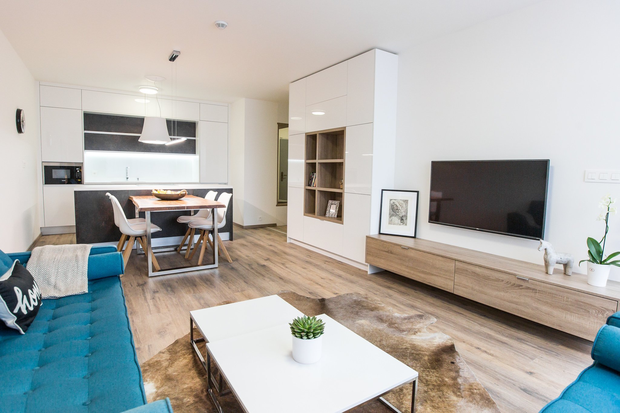 Realizácia vzorového bytu na kľúč. Od návrhu až po realizáciu. Všetky produkty ako jedálenský stôl, stoličky, svietidlá, sedačky a kreslá nájdete na našem obchode.