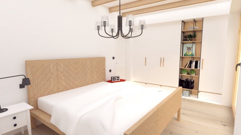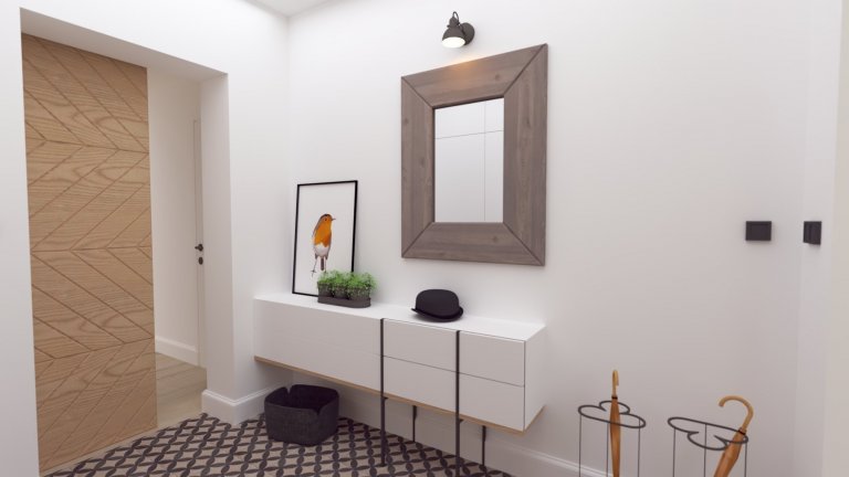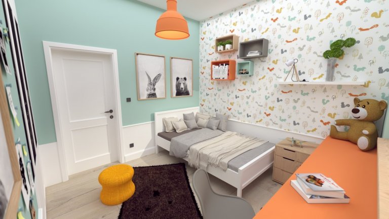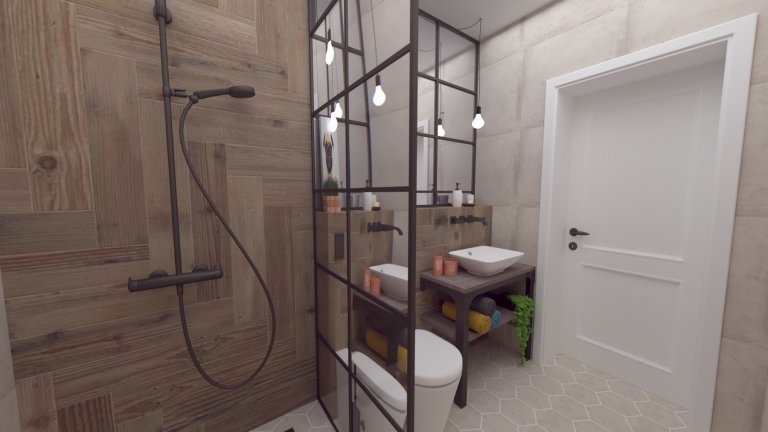 Projekt, v ktorom sa nám prelínajú viaceré štýly od industriálneho cez škandinávsky až po eklektický. Asi najlepšie ho vyjadruje veľký obraz medveďa umiestnený v ovývacej časti. Znázorňuje hrubú silu (v interiéri zakotvenú do kovových prvkov) a presné geometrické tvary, ktorých sa chce striasť (tie prezentujú škandinávsky štýl a minimalizmus).