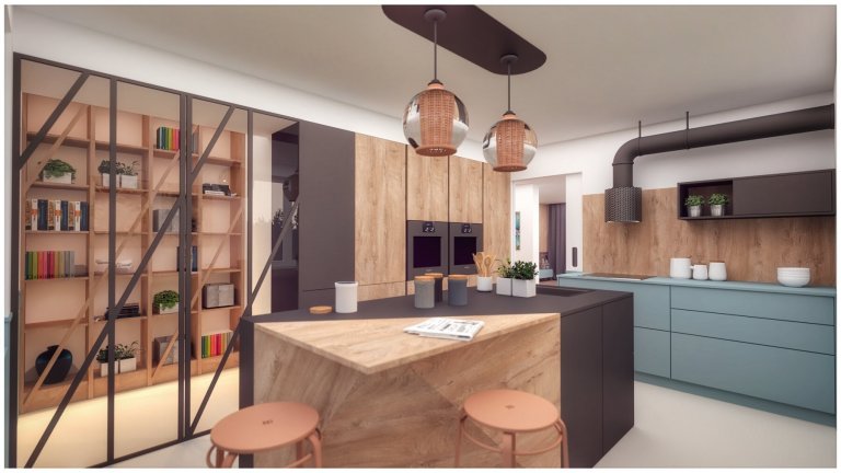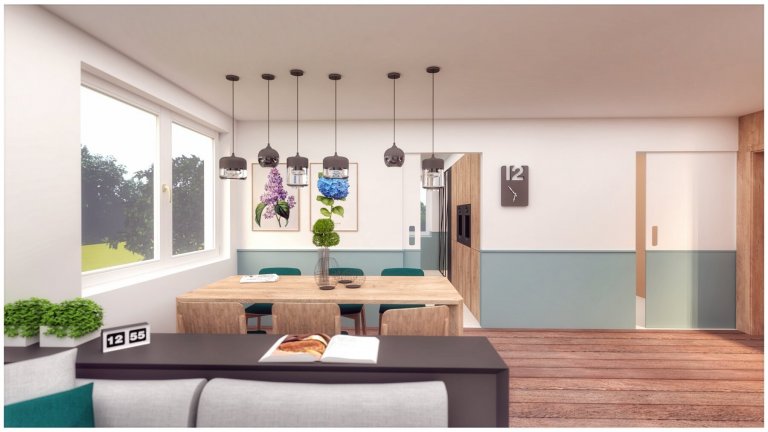 Keby sme chceli tento interiér popísať pár slovami, určite by sme si vybrali tieto: šikmé línie, prírodné materiály, pohoda a hravosť...