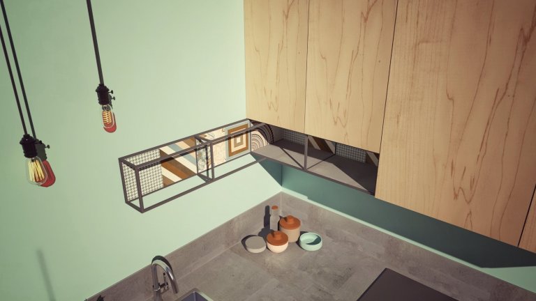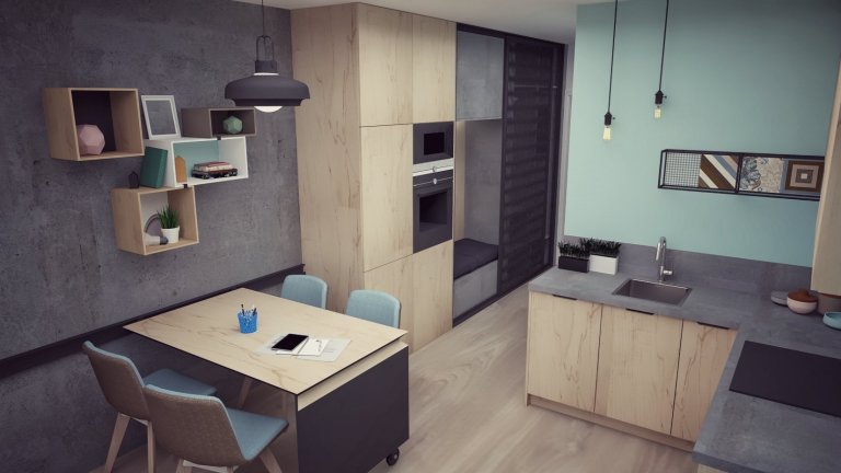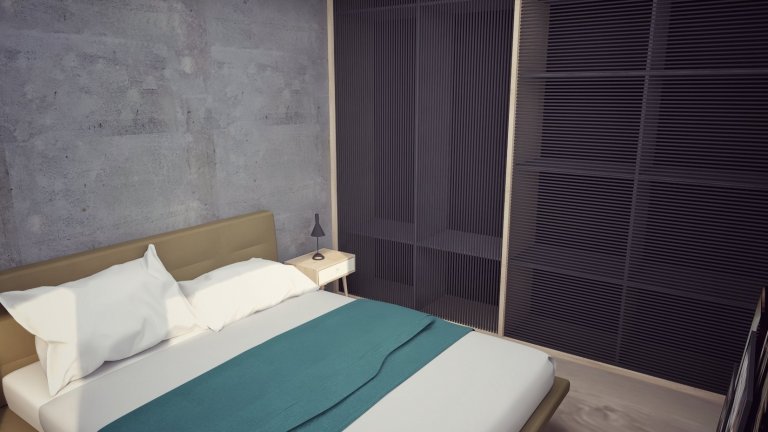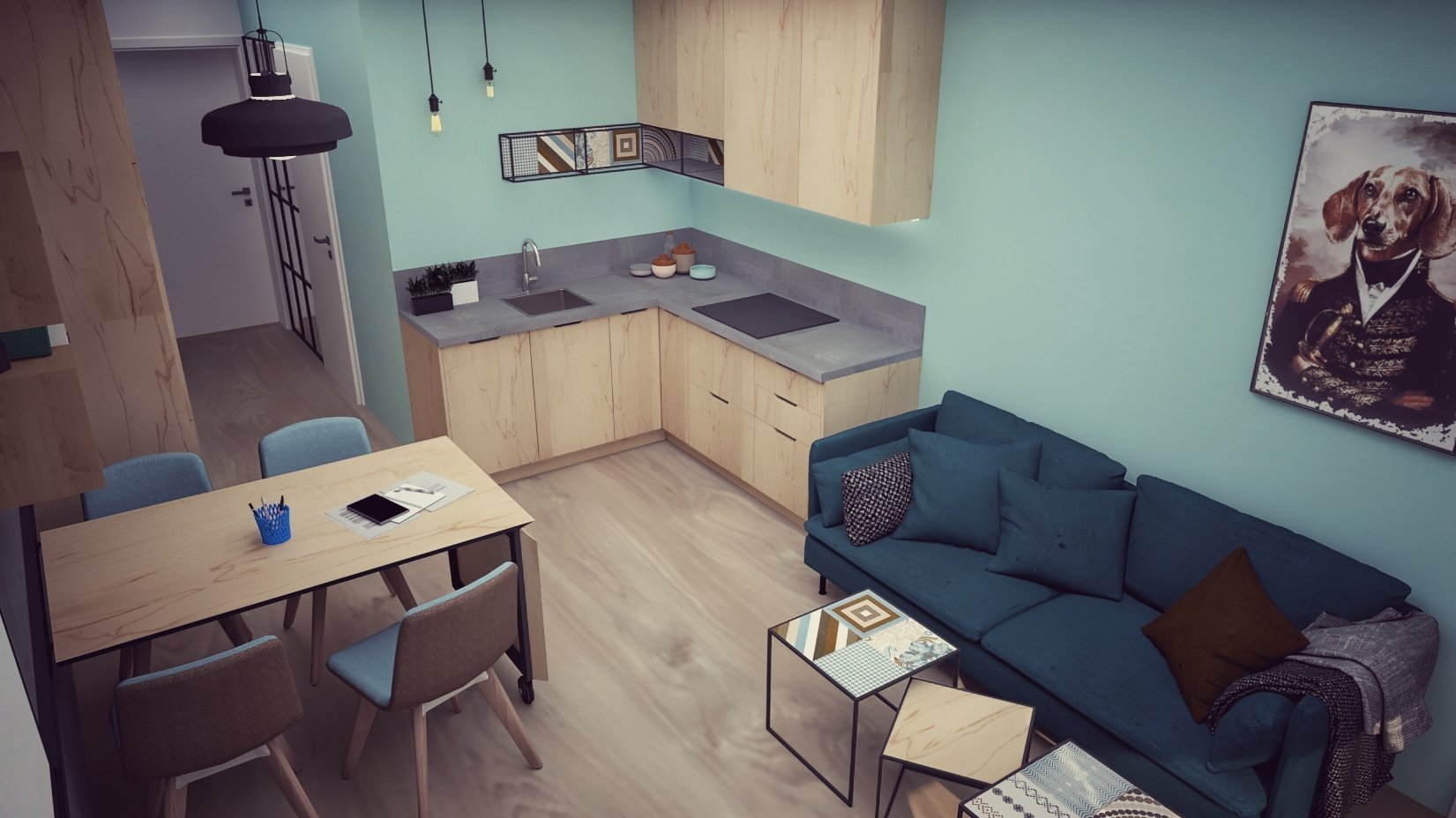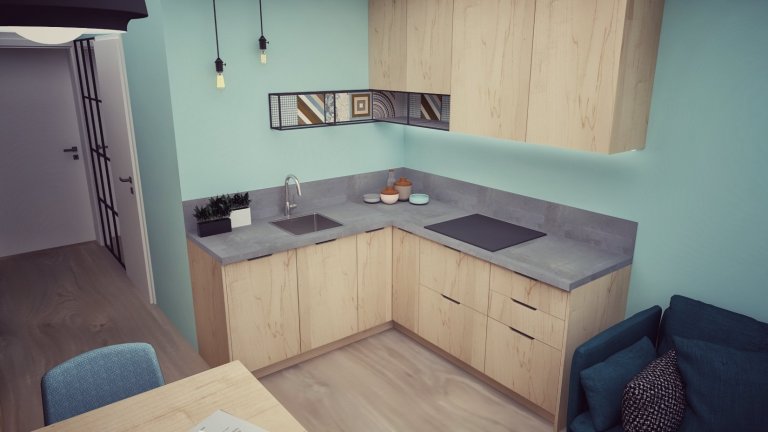 Zariadenie 2 - Izbového bytu v Bratislave v decentne industriálnom štýle.