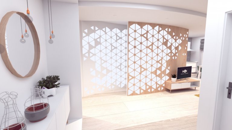 Zariaďovať tento interiér nám robilo veľkú radosť, ktorá sa odzrkadlila aj na konečnom výsledku. Podarilo sa nám vytvoríť interiér plný svetla a pohodovej atmosféry. Pôvodne sme ho zamýšľali zariadiť v čisto škandinávskom štýle, no po doplnení panela s podsvieteným vzorom nám prišiel trochu futuristický :-D (možno škandinávsky štýl v roku 2025). Dúfame, že a Vám zapáči...