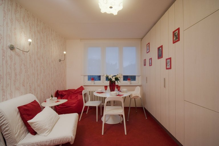 Malý být, který jsme se snažily navrhnout tak, aby byl maximálně využitý a přitom působil odlehčeně a hravě.