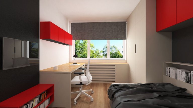 Projekt pro čtyřčlenou rodinu v novostavbě Jahodnice Apartment Houses. Zadáním klientky bylo vytvoření pokojů pro dva dospívající syny, kteří měli už své vlastní představy o stylu bydlení. Po úspěšné realizaci jsme se společně pustili i do zbytku interiéru - kuchyně, obývacího pokoje a ložnice rodičů. Každá generace má odlišné představy o bydlení, ale dílčí prvky v podobě dřevěných povrchů spojují celý interiér domu do jednoho harmonického celku.