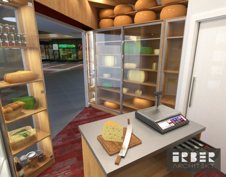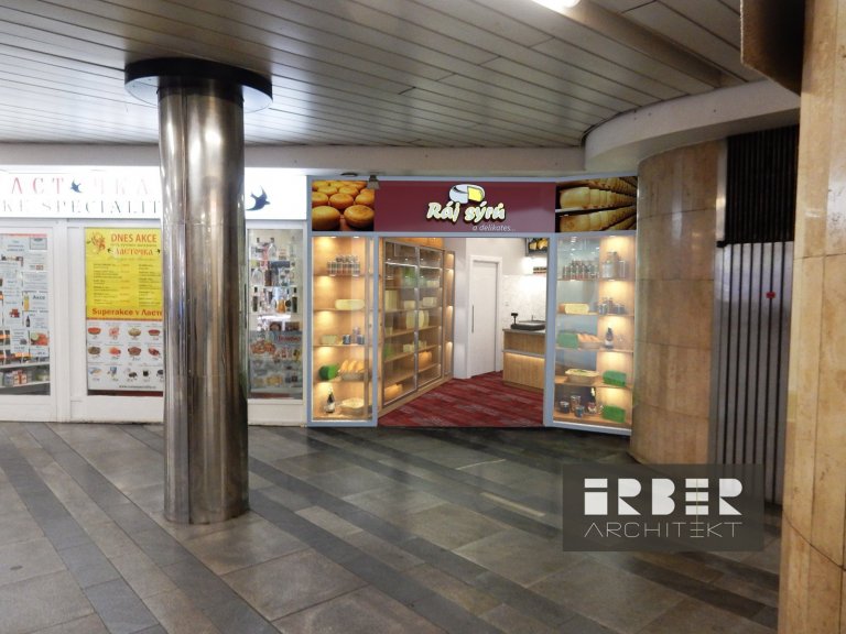 V posledním malém prostoru v pasáži Metra stanice Můstek u výstupu do ulice Na Příkopech vzniká nová prodejna Ráje sýrů a delikates. Při návrhu jsme byli nuceni reflektovat výrazně nepravidelný půdorys prodejny. Vzhledem k velikosti celého místa bylo nutné dopředu zohlednit veškeré prostorové souvislosti a navrhnout prodejnu s využitím místa bez zbytečného plýtvání. V návrhu jsme vycházeli ze zkušeností majitelů franšízy a požadavků nového provozovatele. V návrhu jsme pracovali hlavně s dřevem, které hraje hlavní roli při výrobě atypového nábytku. Dřevo je doplněno keramickými obklady a výraznou keramickou podlahou. Osvětlení prodejny je směrováno ke zboží a maximálně ho zákazníkovi přiblížit.