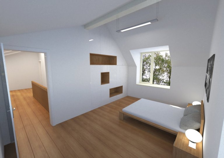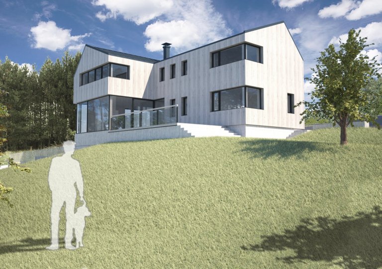 Návrh rodinného domu u Písku v krásné lokalitě s výhledem na Písecké hory. Pozemek je výrazně svažitý. Nabízí nádherné výhledy, které jsou převážně orientované na severní stranu. Dům je navržen jako dřevostavba se dvěma nadzemními a jedním podzemním podlažím. V přízemí se nachází hlavní obytné prostory, koupelna a pracovna. Obytné podkroví je řešeno jako klidová zóna se třemi pokoji a jednou koupelnou. Ve sklepě je navrženo technologické zázemí, prádelna a dílna. Dům je navržen v moderním stylu, ale lze v něm najít i původní tvarosloví venkovských stavení, které jsou charakteristické pro danou lokalitu. Investor požadoval, aby dům maximálně využil krásy pozemku a jeho výhledů do krajiny.