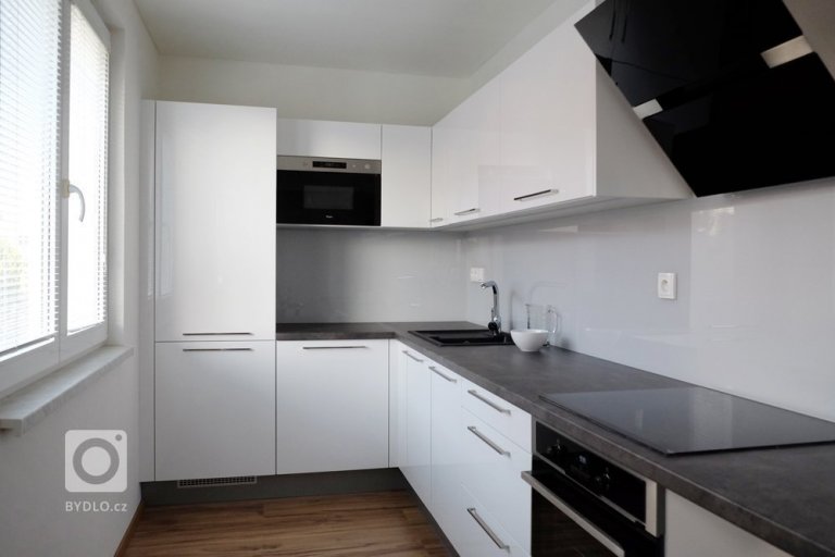 Kuchyně, součástí kompletní rekonstrukce bytu v panelovém domě v Praze 10.