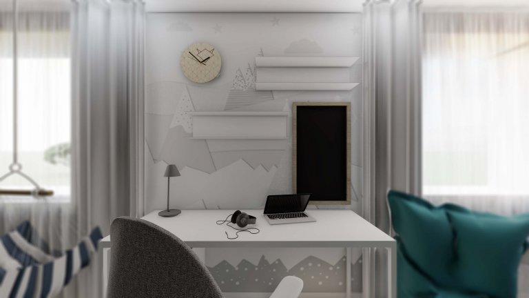 Dětské pokoje jsou navrženy pro malé děti, ale požadavek rodičů byl takový, aby byly pokoje pro děti zajímavé i v pozdějším věku, kdy budou žáci základní školy. V pokoji pro holčičky jsem zvolil koncept střídmého základu v bílém nábytku doplněným dekorem dubu a starorůžový akcent na doplňcích. Dominantním prvkem je balónkový lustr od firmy Brokis, který v pokoji působí velmi hravě. Dále postele, které jsou součástí vestavěných skříní ve formě domečků, kde najde každá z princezen své soukromí a útočiště. Klučičí pokoj má stejný základ, který je doladěný pastelově modrými tóny a tapetou. Dominantou pokoje je lezecká stěna, kterou ocení snad každý kluk, ale myslím si, že nepohrdnou ani děvčata. Uvidíme, zda nebudou bráškovi stěnu dříve či později okupovat. Koncept pokojů je součástí interiéru rekonstrukce domu, kde jsme navrhovali i zbytek ve střídmém základu, tak aby vše ladilo a zárověň souviselo se vším.