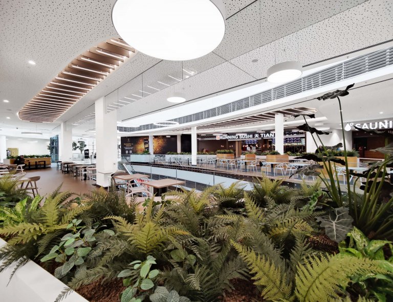 Na projektu OC Forum Liberec, jsem spolupracoval s architektonickou kanceláří Siadesign, díky které jsem se k projektu dostal. Jednalo se o velký redesign po deseti letech od prvního otevření. Na projektu jsem si vyzkoušel práci ve velkém týmu, kde jsem měl na starosti 3D modely a pracovní vizualizace pasáží a foodcourtu. Nábytek a mobiliář jsme vybírali, ale i vymýšleli namíru. Jednoduchý prosvětlený design je doplněn o šedý a černý akcent obkladu na sloupech mezi výlohami nebo na podlahovém ornamentu protínající celé centrum. Ve foodcourtu jsme využili hlavně dekoru masivního dubového dřeva v kombinaci s bílým corianem a nábytku v černé a bílé barvě. Ostatní mobiliáře kolem sloupů jsou vymyšleny tak, aby vše doplňovaly a měly svoji funkci (odpadkové koše, odkladače táců, atd.) Dominantním prvkem je podhled, který je tvořen žebrováním v dekoru dřeva. Motiv se opakuje na více místech v centru jak na stropech, tak na spodních částech eskalátorů.