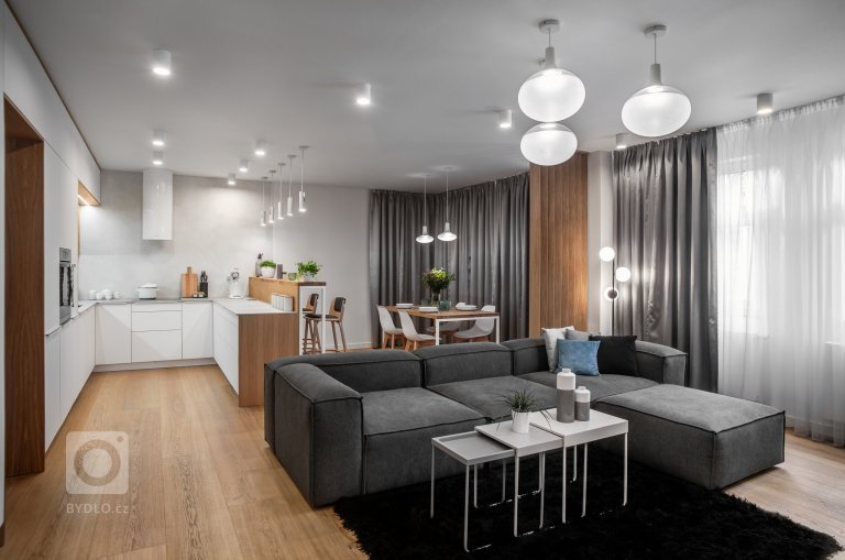 Interiér, ve světlých odstínech v kombinaci s dubovým dřevem s doplňkovým materiálem betonové stěrky. Ta je využita na pohledové části. Jako kontrastní barva je zvolena bílá, která se objevuje na doplňcích a osvětlení. Materiálový koncept je aplikován v každé místnosti. Tím…