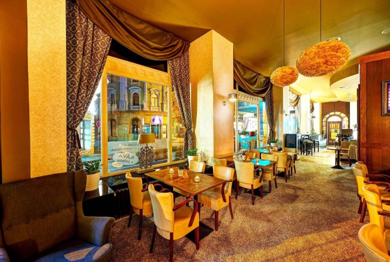 „K původním secesním lampám do prostoru přibyla stropní svítidla z husího peří. Kavárna tak získala prvek, na který se každý rád podívá s úžasem.“