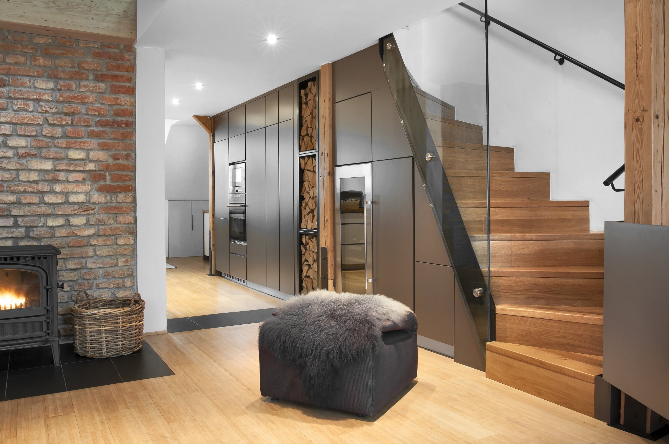 Bydlení v přírodě by bylo ideální, což nebylo kvůli práci a aktivitám možné. Proto se mladá rodina po šesti letech v mezonetovém bytě rozhodla pro změnu interiéru tak, aby více vyhovoval jejich touze po přírodě. Celý interiér je pojat v moderním stylu za použití co nejvíce přírodních materiálů a neutrálních barev. Vestavný nábytek na míru v šedém matu místnosti dodává moderní technický ráz, který zútulňuje mramorová mozaika a dřevo. Obývací pokoj tvoří dominantu mezonetového bytu. S kuchyní ho spojuje skříň s vestavnou vinotékou a zásobník na dřevo. Druhé patro propojují schody se skleněnou stěnou.