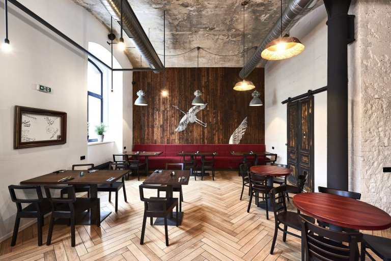 Například na hlavní odbytový prostor určený pro hosty, který zabírá cca 123 m2, se skvěle hodila věrná imitace dřeva odkazující na původní karlínské parketové podlahy z produkce italské společnosti Marazzi. Konkrétně se jedná o dlažbu Treverkfusion Neutral o rozměru 10 x 70 centimetrů.