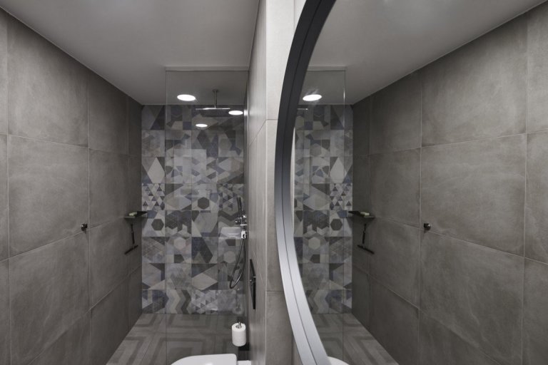 Dodávkou obkladů, dlažby a sanity jsme se podíleli na rekonstrukci ateliéru, který by měl kromě pracovní funkce splňovat částečně i funkci obytnou. V interiéru naleznete obklady Caesar One Cement o rozměrech 60x60 cm a neméně skvěle vypadající rozměr 60x120 cm s dekorem One Deco Mix.