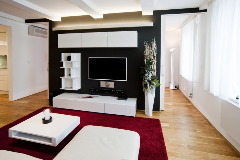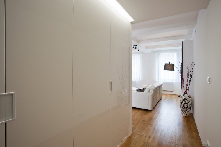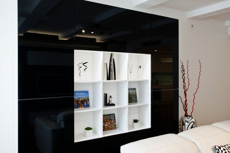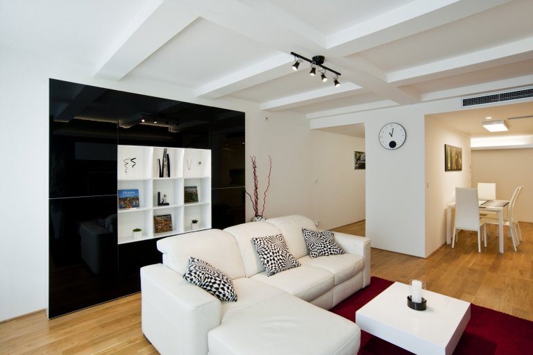 Interiérový design na vynikající adrese. Tak lze vystihnout realizaci v luxusním pražském bytě s atraktivním nábytkem navrženým na míru. Dispozice: 2kk Užitná plocha: 64 m2 Realizace: 2013