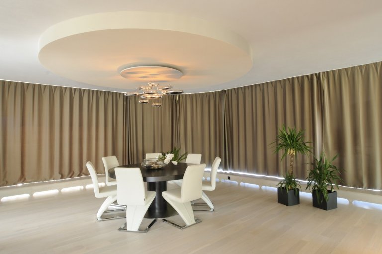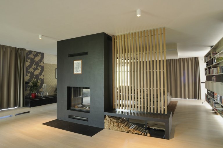 Výjimečná realizace ve výjimečném domě zahrnula výrobu nábytku na míru i praktické stavební úpravy. Podstata novostavby domu, stojícího nedaleko lesa v jedné části Brna, spočívá v otevřeném velkorysém prostoru. Velkoformátová okna z obou stran stavby tento pocit ještě umocňuj. Na návrhu interiéru jsme spolupracovali s architektem investora a realizovali atypický nábytek včetně obkladů schodiště, designových příček a speciálních obkladů konvektorů po vnitřním obvodu domu. Specialitou je výroba centrálního kulatého stolu a výroba nábytkové příčky v obývacím pokoji neviditelně obepínající konstrukční prvky stavby.