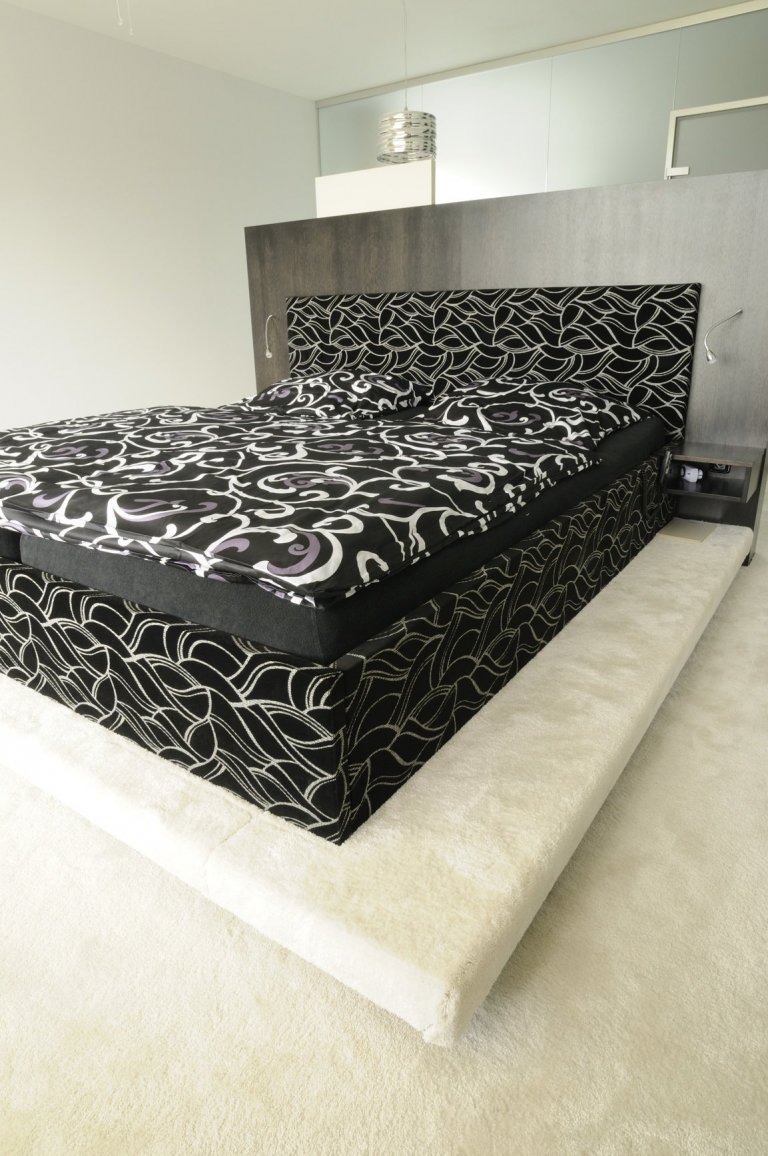 Popis vybavení: Na podlahy celého domu a schodiště byla položena dubová bělená parketová podlaha, dveře a atypický nábytek včetně příček v obytném prostoru je vyroben převážně v kombinaci dubového masivu a dýhy v barevném tónování tzv. mořením. Celý interiér se nese v duchu přírodních materiálů. Na podlahách, kde nejsou použity parkety, byl položen speciální materiál Flotex, který výborně kombinuje vlastnosti PVC (snadná údržba a odolnost) a koberce (příjemný na dotek bosou nohu).
