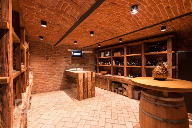 Nový dům na historických sklepech, to je výsledek našeho citlivého snažení, které se inspirovalo požadavky investora. Ladění detailů jsme zvládli na jedničku. Dispozice: PP (vinárna, fitness, koupelna, WC, technická místnost a sklad). 1NP (vstupní hala, kuchyně s jídelnou a obývacím pokojem, pracovna, koupelna s WC). 2NP (ložnice, 2 dětské pokoje, 2 šatny, koupelna a WC). Realizace: 2015