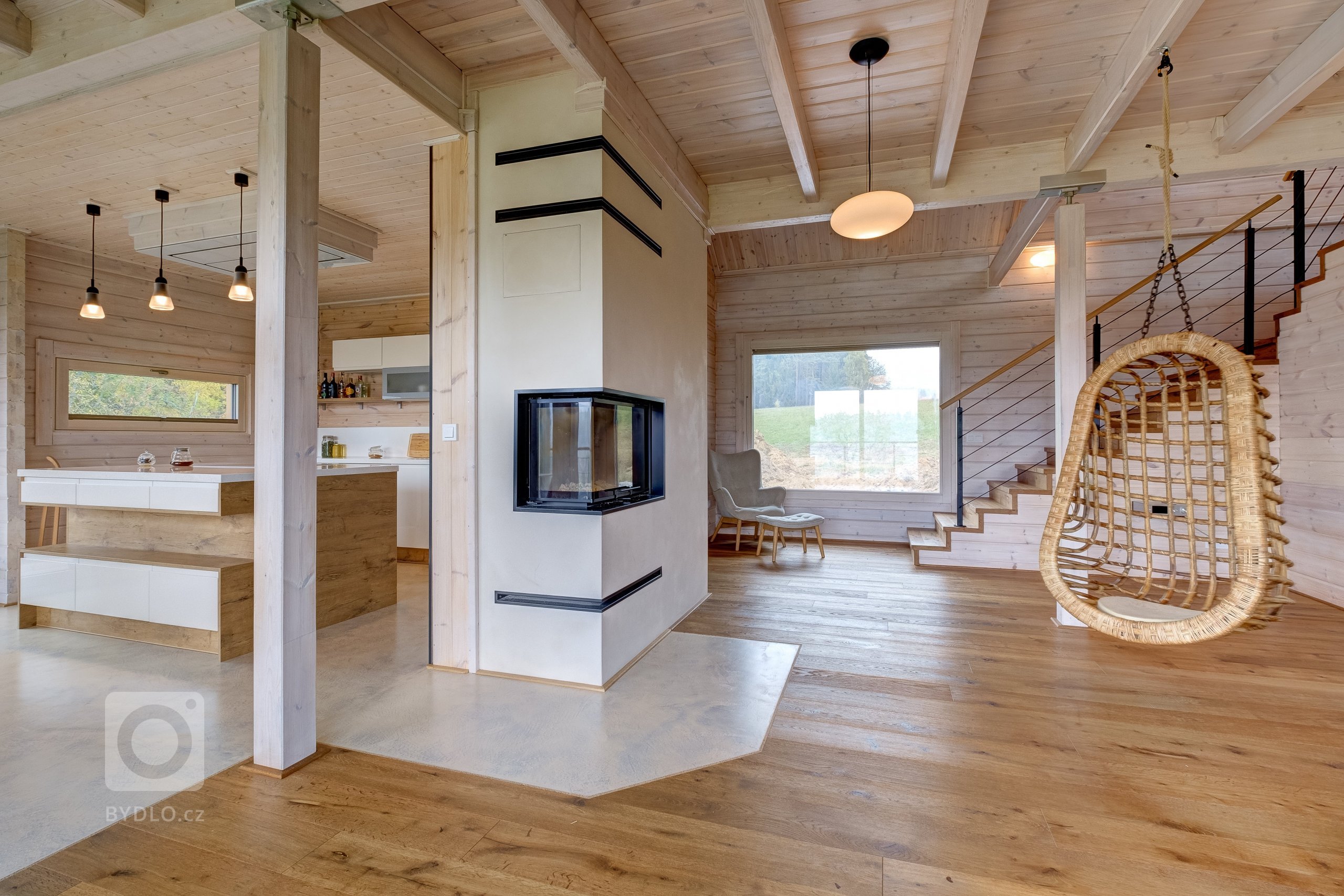 Prostorný dům v šumavské stráni postavený z masivních hranolů finské, polární borovice.