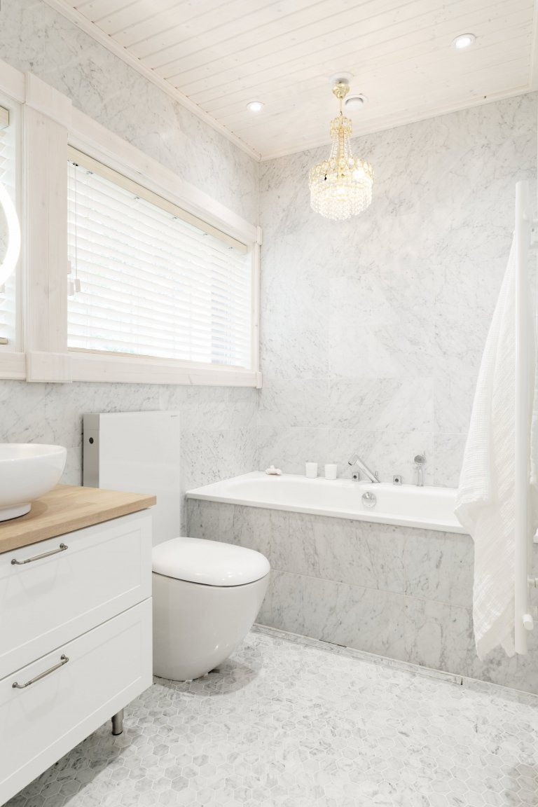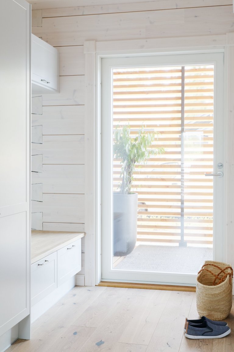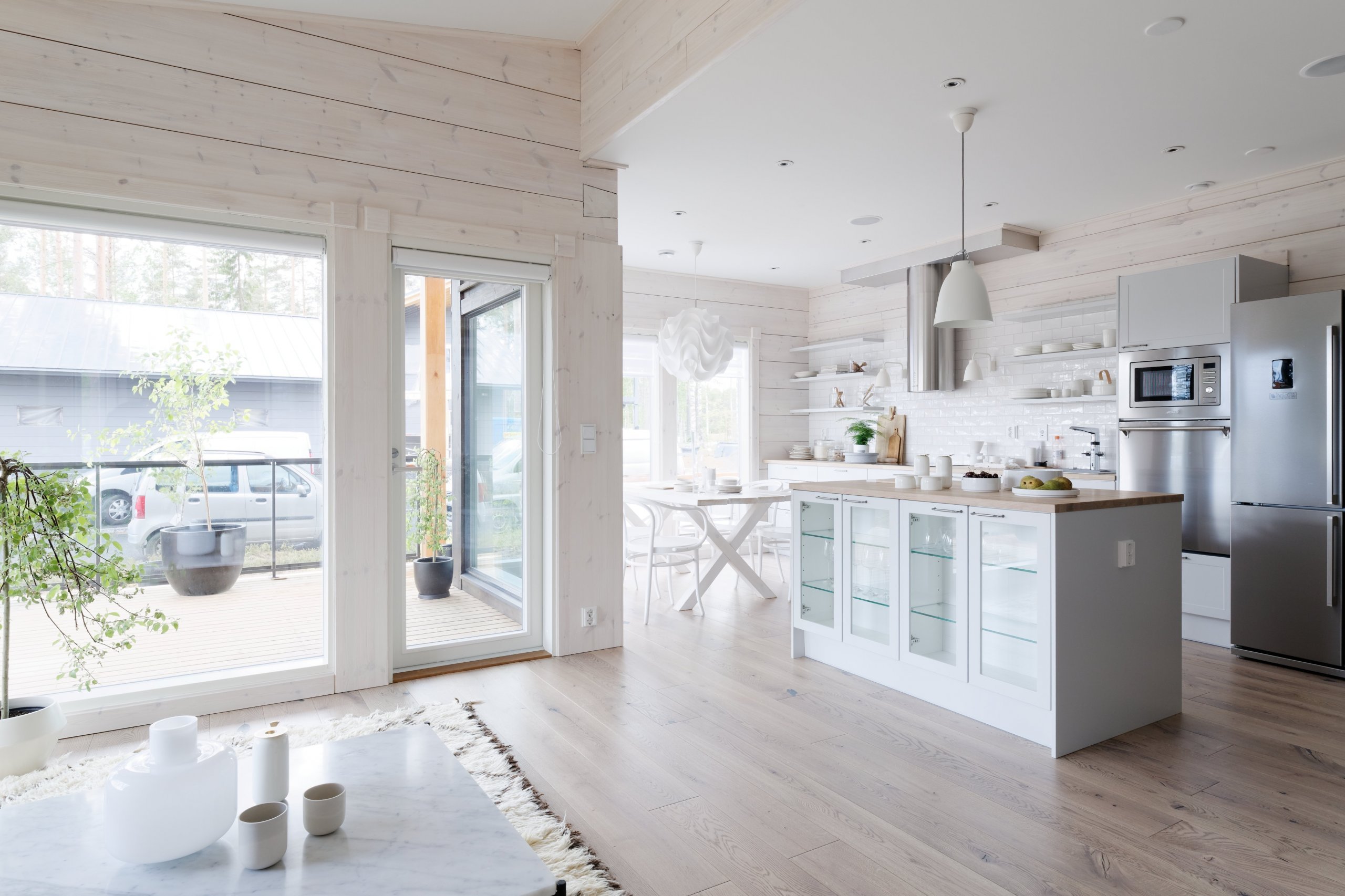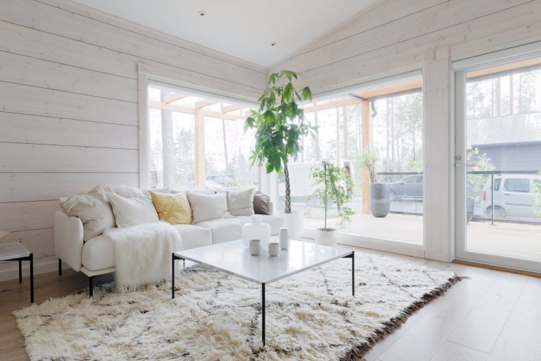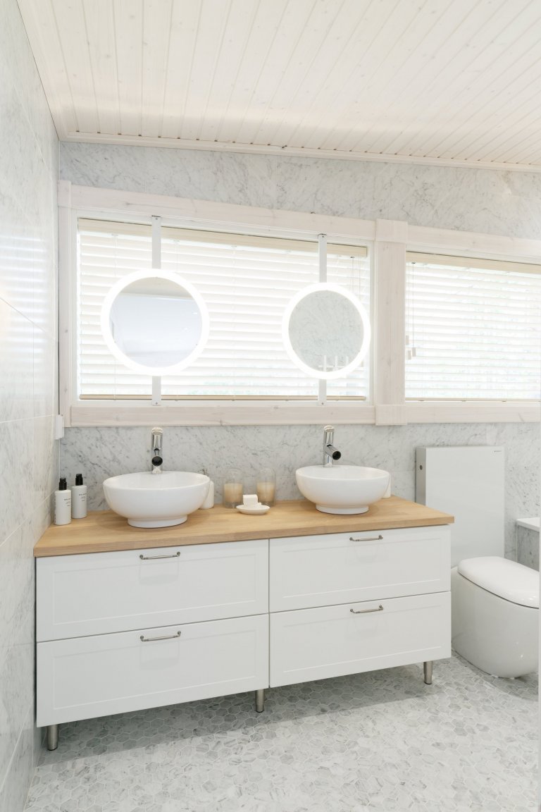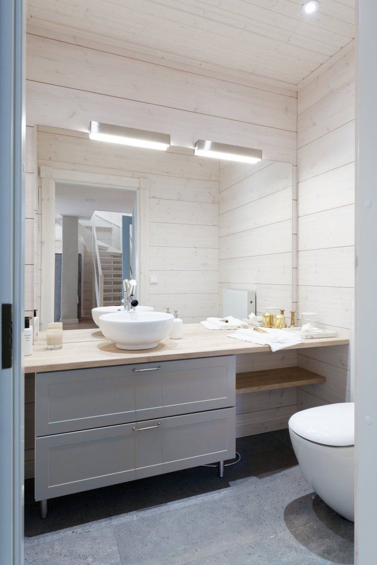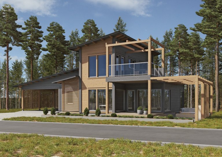 Srubový typový dům Toive upravený na míru a dle přání majitelů postavený ve finském městě Mikkeli. Exteriér domu má tak ryze moderní vzhled, přesto je kombinace přírodních tónů dřeva s antracitem velice působivá a tvoří příjemný celek s okolní přírodou. Interiéru vévodí bílá a kombinace dřeva, kamene a lesklých materiálů