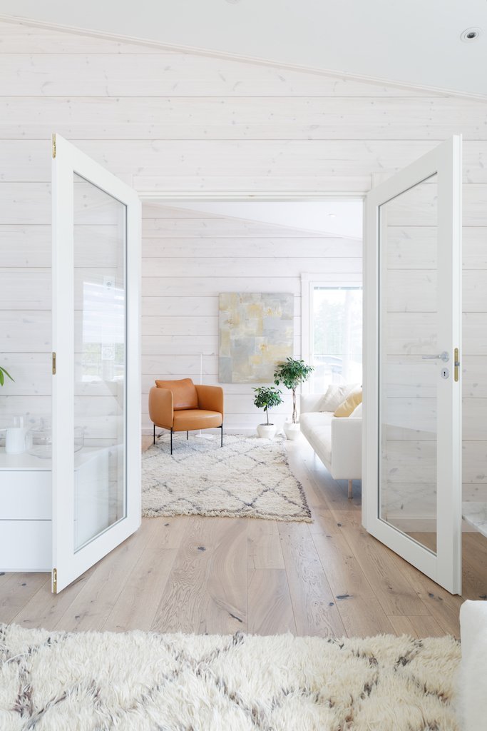 S vybavením interiéru roubené dřevostavby pomáhala Tiině a Markovi interiérová designérka Piia Kalliomäki.