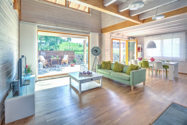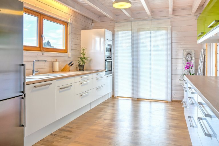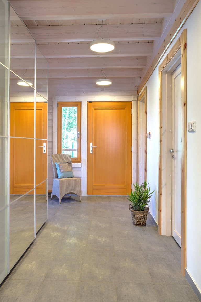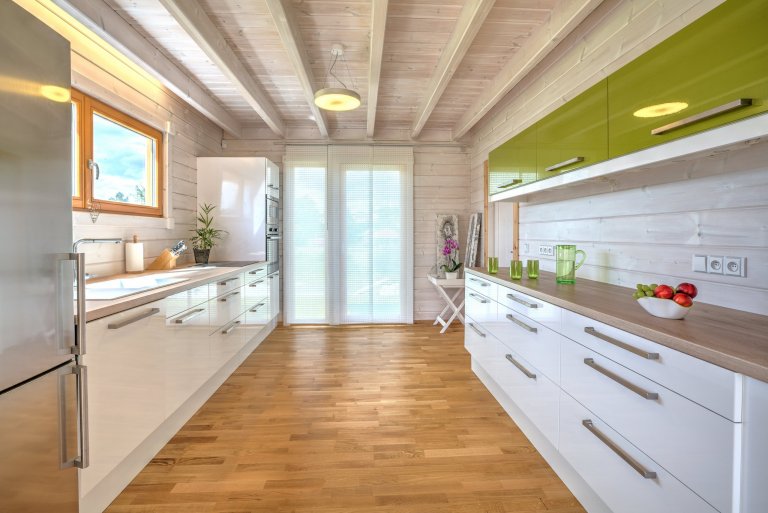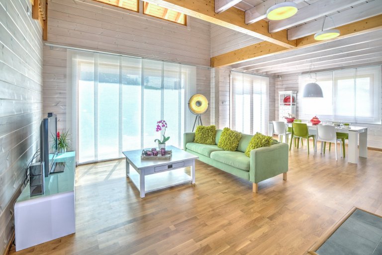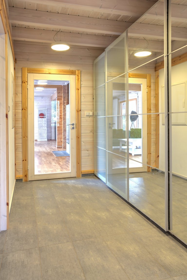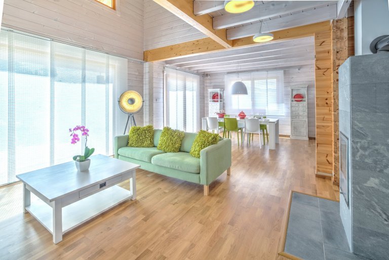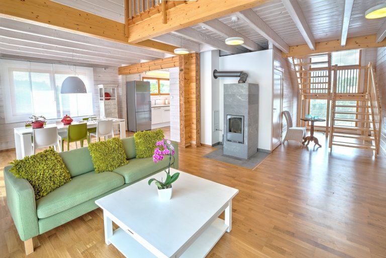 Prostorný finský srubový dům z nesedavých trámů vyrobených unikátní technologií z pomalu rostlé arktické borovice. Dřevo je ponecháno v přírodní barvě. V domě je v horním patře otevřená…