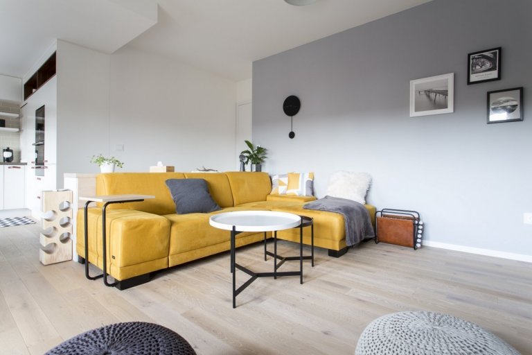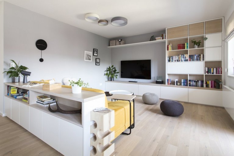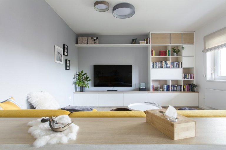 Byt v Modřanech, 60m2 pro mladou dámu, dispozice 2+kk. Hezký prostorný obývací pokoj s kuchyní a ložnice, nabízí příjemné bydlení. Byt je navržený tak, aby byl vzdušný a přitom útulný. Použili jsme přírodní materiály, světlé odstíny a stylově šli do severského stylu. Milovníci cyklistiky si oblíbí zejména předsíň.