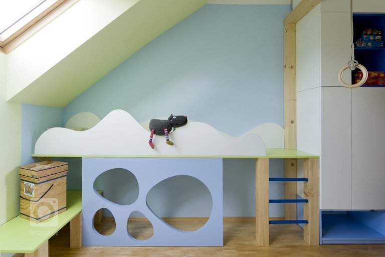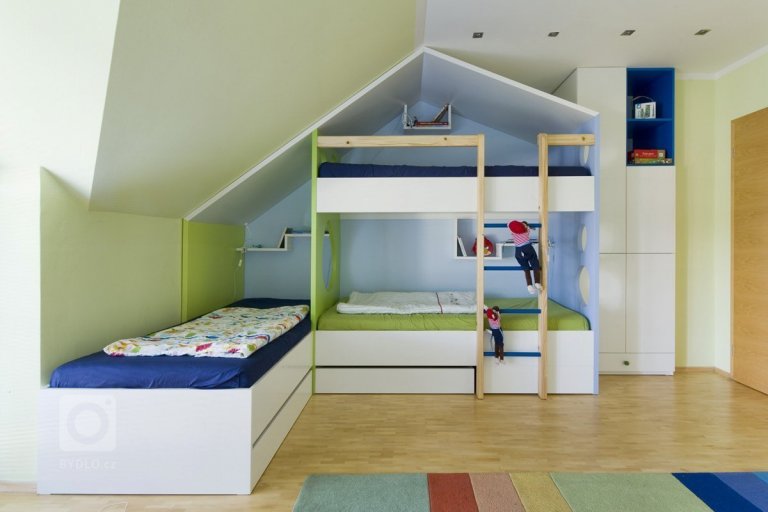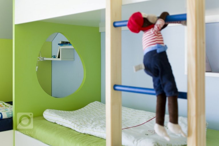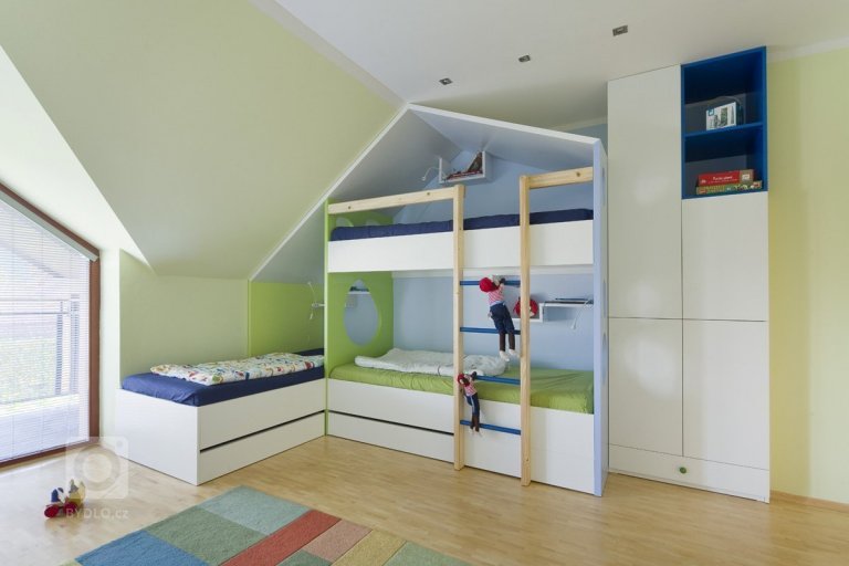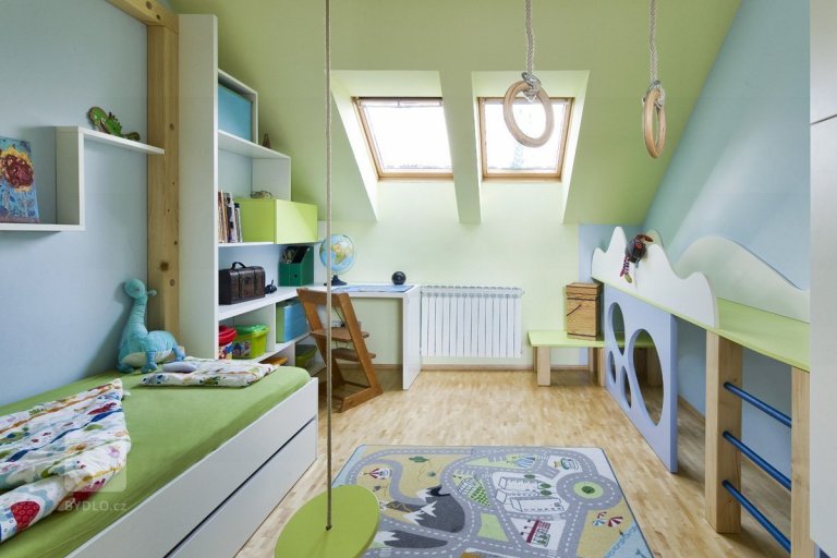 Tyto dva pokojíčky vznikly na žádost rodičů, kdy kluci pomalu rostou a potřebují víc prostoru než jeden pokoj pro tři. Naštěstí byl v domě ještě jeden volný pokoj, který se udělal jako nová ložnice a z ložnice se udělal pokoj pro dva kluky. Zadání bylo, navrhnout funkční a hravý místnosti. Když není prostor hrát si venku, tak aby mohli kluci vybít svou energii doma aniž by trpěly věci, které k tomu nejsou určeny. Nakonec návrh splnil svůj účel nejen pro děti, ale i pro tatínka, který si na trám hmed pověsil TRX.