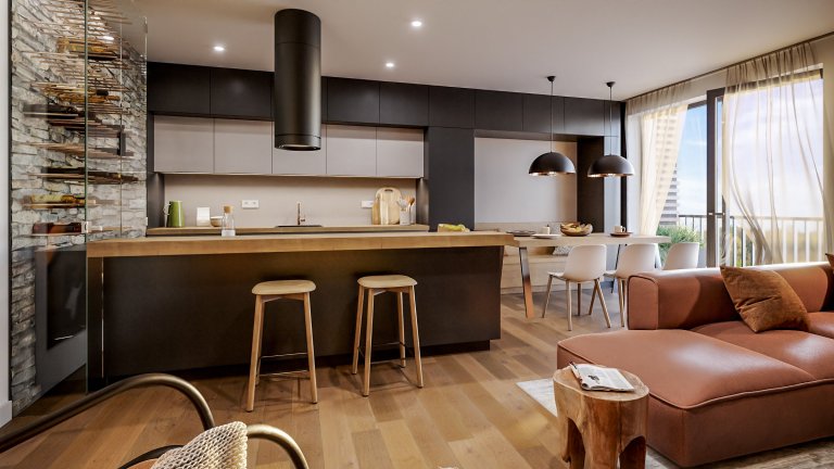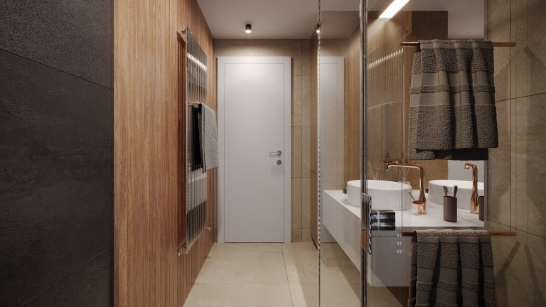 Pro developerský projekt apartmánového domu v Harrachově jsme navrhli možné podoby interiérů. Základem všech interiérů jsou bílé dveře a antracitová okna.