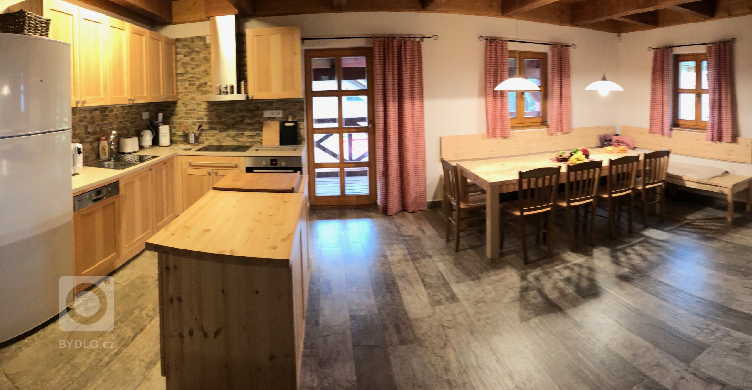 Kuchyňská linka z masivní borovice do stylového prostředí horské chaty