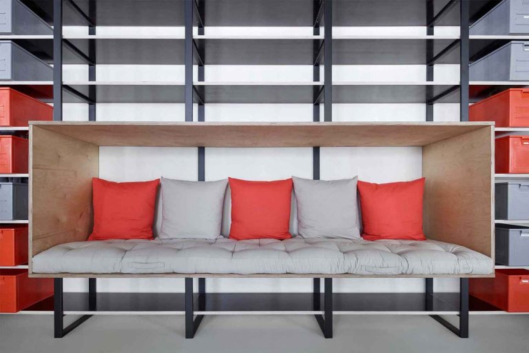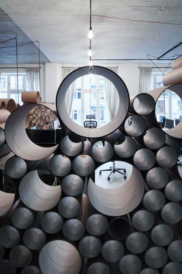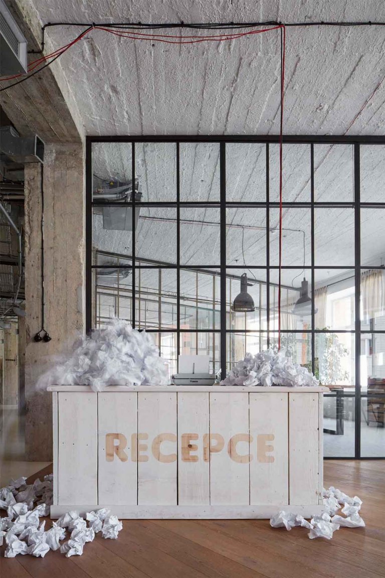 Přestěhovat za pouhé tři měsíce komunikační agenturu Czech Promotion ze slavné Winternitzovy vily do nerekonstruovaných prostor Paláce Karlín s jeho vlastní, i když ne tak slavnou, historií, se zprvu zdálo jako úkol pošetilý, až naivní. Přesto právě časový tlak formoval samotný návrh a způsob spolupráce s klientem i dodavateli. Zadáním i návrhem se na začátku procesu stala pouze čistá koncepce a celková jednotná vize, jež zamezovala následným neshodám či zdržujícím debatám ohledně jednotlivých částí návrhu. Šlo tedy o velmi rychlé nastolení absolutní důvěry mezi oběma stranami. Takový přístup byl riskantní, zároveň však pro všechny zúčastněné strany silně motivující. Každý z jednotlivých elementů návrhu má za sebou nějaký příběh a přidanou hodnotu. Členění otevřeného prostoru je tvořeno papírovými trubicemi, které splňují i funkci úložných prostor, a vytvářejí tak jedinečnou identitu projektu. Tyto polopříčky si stavěli o víkendu před pondělním otevřením sami zaměstnanci s naší pomocí a koordinací. Vybraná barva polyuretanové stěrky je v barvě slonové kosti – barvě, pro kterou se Winternitzově vile přezdívalo „béžová princezna“. Tato barva se pak propsala i v použité válečkové malbě, jež sama o sobě byla výzvou pro malíře, který tak oprášil své staré dovednosti. Mnohé z interiérového vybavení je výsledkem náročného pátrání po starožitnictvích v kombinaci s renovovanými křesílky, až po úplně nové prvky od zavedeného českého výrobce. Použité osvětlení je z velké části výrobkem jedné z divizí samotné společnosti. A ukázkou kombinace rafinovanosti a řemeslného umění je největší ze stolů použitý v zasedačce – dubový, 750 kg vážící prvek z odpadových zbytků fošen, které stály zlomek ceny jinak drahého materiálu a jež zároveň doplňují důstojnost hlavní zasedací místnosti.