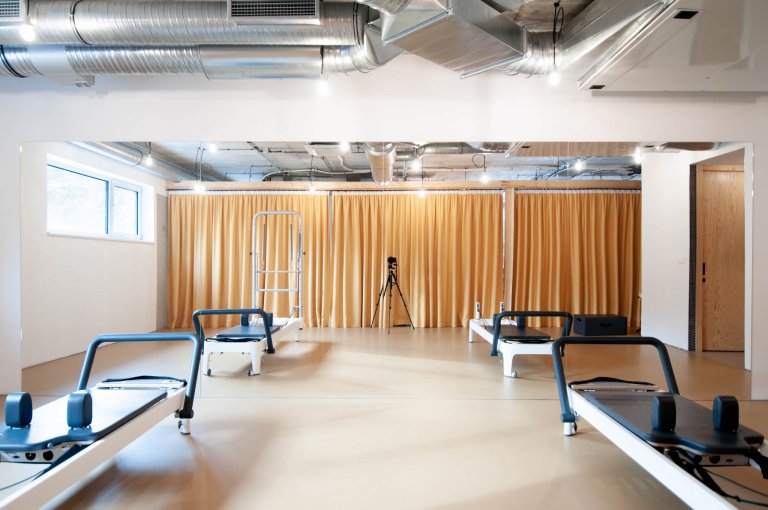 Specializované studio zaměřené na metodu pilates s názvem Pilates Art, které najdete v Klánovicích, je místem, kde se cvičí na dokonale vymyšlených a elegantních pilates strojích. Pro majitelky bylo od samého počátku důležité, aby vzniklo více než pouhá tělocvična naplněná lidmi. Hledali jsme přístup, který podpoří kvalitu cvičení, ale zároveň vytvoří kulturní prostředí, ve kterém se bude citít dobře nejen tělo, ale i duše. Místo, kde zákazníci i lektoři budou chtít trávit svůj čas. Studio je rozděleno do několika základních zón, které společně vytváří kompaktní a funkční celek. Samotný střed studia tvoří odpočinkový ostrov, tzv. komunitní zóna určená k příležitosti sdílet dojmy s ostatními u kávy nebo čaje, nebo jen vnímat dozvuky cvičení. Interiér studia je inspirován japonskou střízlivostí, pracuje především s přírodními materiály, klade důraz na vzdušnost, odlehčenost, celkovou rafinovanost a chytré detaily. Dominantním materiálem je voskovaná borovicová překližka a odolné akustické závěsy, které slouží pro jednoduché, ale efektní dělení celého studia do jednotlivých zón. Interiér jsme doladili černými detaily, keramickou mosaikou a barevnou podlahovou krytinou, jež záměrně kontrastuje s převažující střízlivostí a soustředí v srdci studia, v rámci komunitní zóny. V rámci rozpočtu jsme navrhli také jednoduchá svítidla z japonského papíru (washi). Díky svým zajímavým, téměř až zemitým texturám, a jedinečné kvalitě, tvárnosti, ale i vynikající odolnosti, je tento papír již dlouho uznaván jako ideální materiál pro svítidla, jež vydavájí příjemné měkké průsvitné světlo.