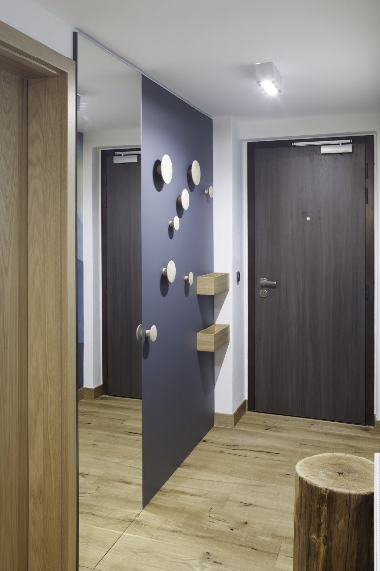 Většina nábytku je navržena na míru, v koupelnách jsou sestavy ze série Lebon Next.