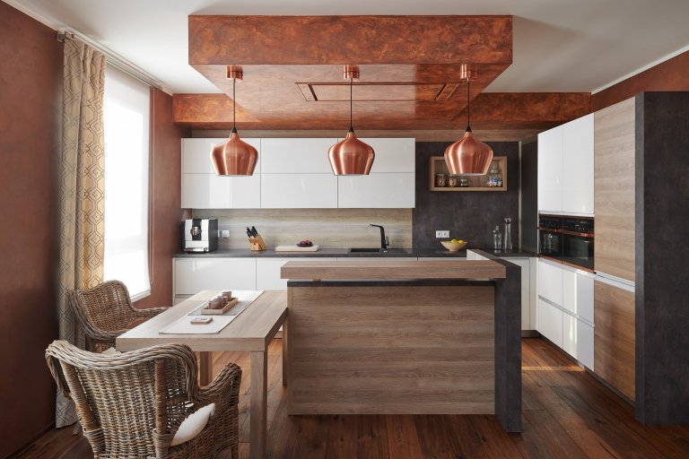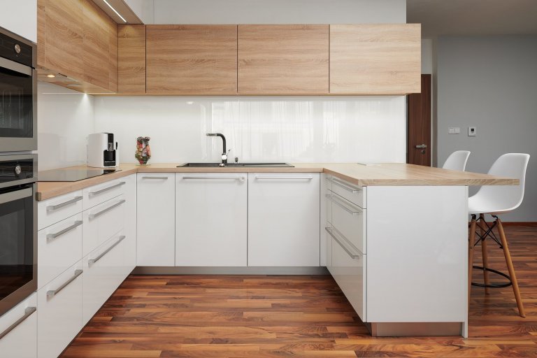 Bílá kuchyně lesk a dub bardollino