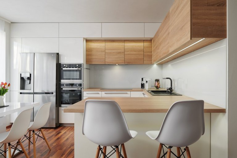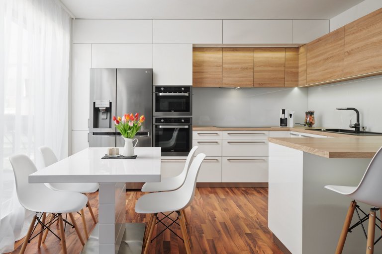 Moderní kuchyně Infini s jemně skandinávským nádechem. Kuchyně do L jsou ideální volbou pro menší a střední prostory.