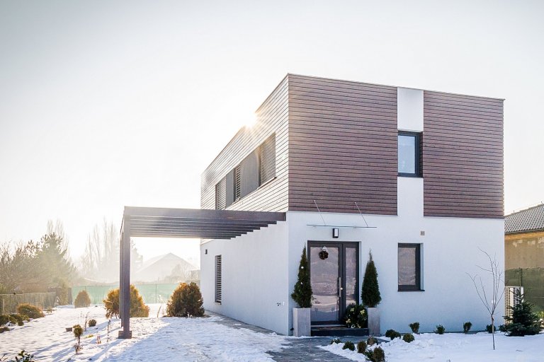 Zadáním rodinného domu v Litoměřicích byla přesná představa klientů o jednopodlažním domě s půdorysem ve tvaru písmene L a s jasně definovanou a vzájemně oddělenou prostornou společenskou a intimnější klidovou částí domu. Tvar pozemku však tuto hmotovou představu příliš nepodporoval. Společná diskuze o ideálním řešení domu nakonec přinesla výsledný návrh úzkého dlouhého dvoupodlažního domu, jehož přízemí slouží jako hlavní denní obytná zóna a soukromé prostory jsou situovány v patře. Minimalistické řešení interiéru domu a cit klientů pro detail zachovává prostory vzdušné a esteticky čisté. Příběh tohoto domu je krásným příkladem charakteru tvůrčího procesu. Rodinný dům je realizován v tzv. „nízkoenergetickém standardu" s difúzně uzavřenou skladbou obvodové stěny. V celém domě je instalován systém teplovodního podlahového vytápění v kombinaci s tepelným čerpadlem typu vzduch - voda. Proti přehřívání v letních měsících je dům chráněn pomocí předokenních žaluzií a pevného lamelového slunolamu.