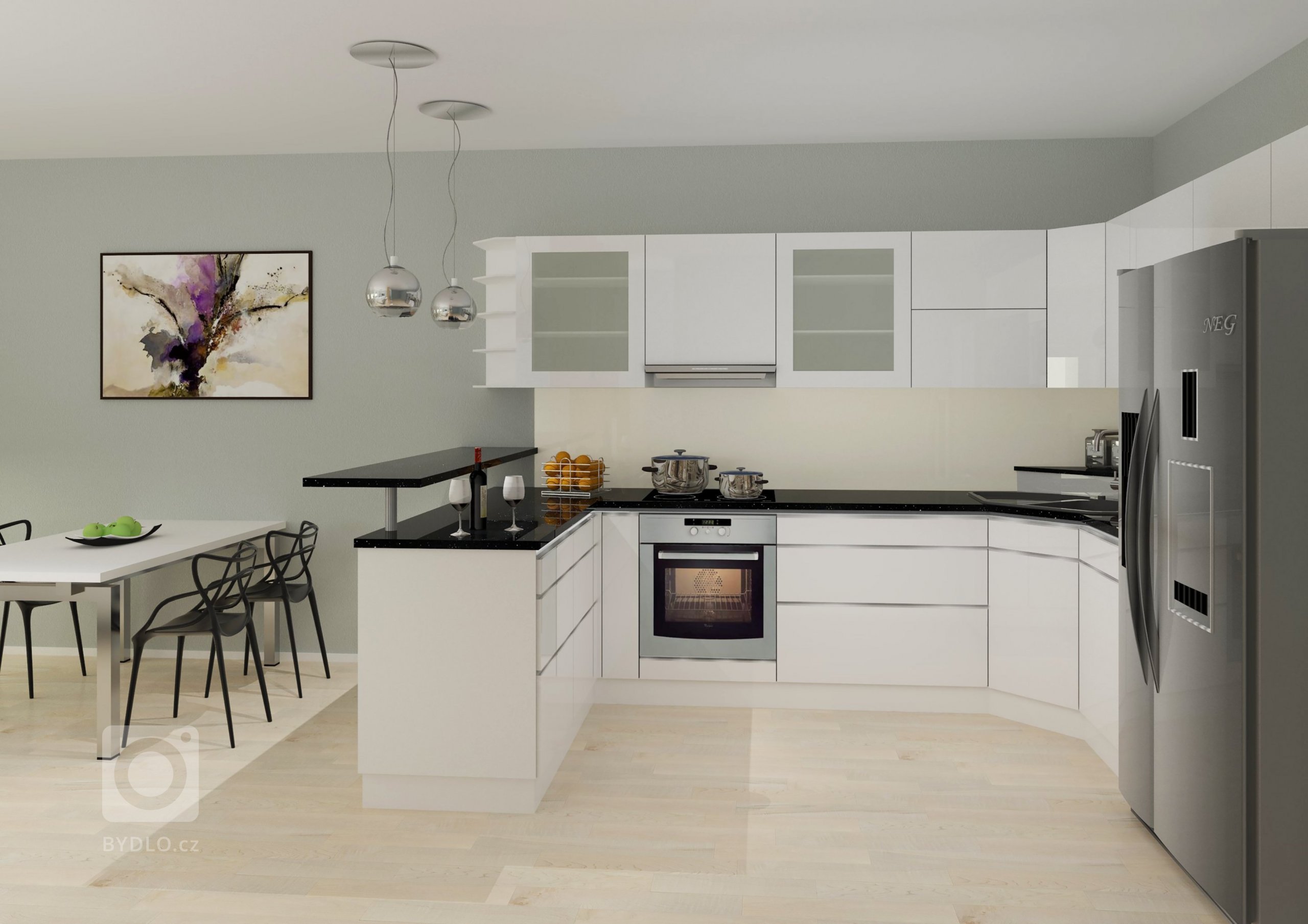 Obývací pokoj, kuchyň, koupelna