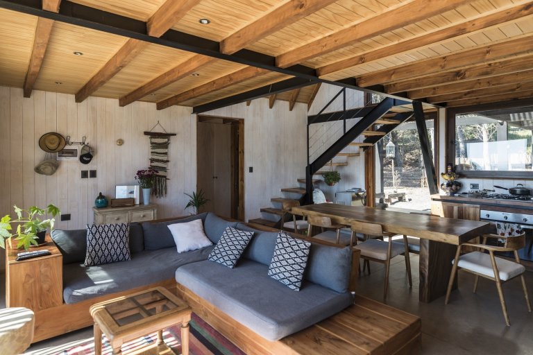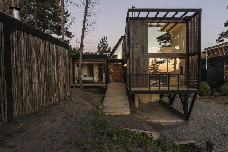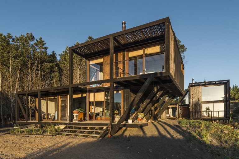 Když si rodina koupila pozemek v těsné blízkosti oceánu, věděla, že chce, aby na tomto místě stál i jejich rodinný dům, v jehož těsné blízkosti měl být i prázdninový domek sloužící jako penzionek k ubytování hostů. Nakonec na pozemku vznikl modulární dům loftového typu, u něhož je i jednopodlažní domek pro hosty.