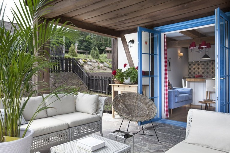 Druhým předpokladem jsou pohodlné soukromé prostory. Je důležité, aby každý měl svůj vlastní koutek a místo, kde bude sám. Když máte prostor jen pro sebe, rádi se zase vracíte k ostatním členům rodiny. Dům byl dostatečně velký na rozdělení do velikostních zón. Malá kuchyně byla přesunuta do místnosti, které vede přímo do zahrady a na terasu. Od jara do podzimu jsou je na terase sedací nábytek, stoly, proto je s terasou zacházeno jako s další místností, která patří do interiéru domu. Je to místo setkávání, radosti, vaření, pečení, sledování a naslouchání zahradě.