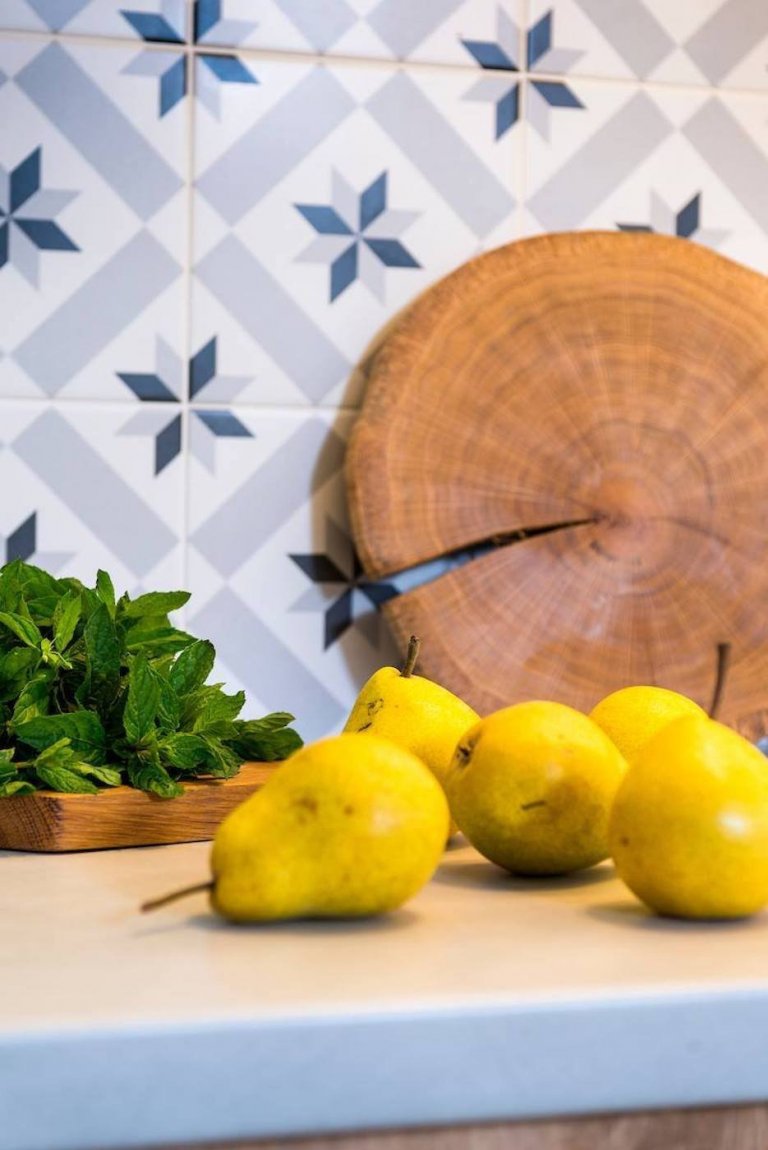 Díky umně zvoleným barvám, tvarům a materiálům máme před sebou neskutečně harmonický celek. Ten si navíc libuje v absenci zdobnosti, a tedy v čistých liniích a také v geometrii. Stačí si povšimnout židlí, stolků, závěsných svítidel, podstavců pod květináči, nástěnných hodin, mozaiky za kuchyňskou linkou nebo obkladů v koupelně. To vše si zakládá na symetrii a jednoduchosti, ve kterých spočívá síla.