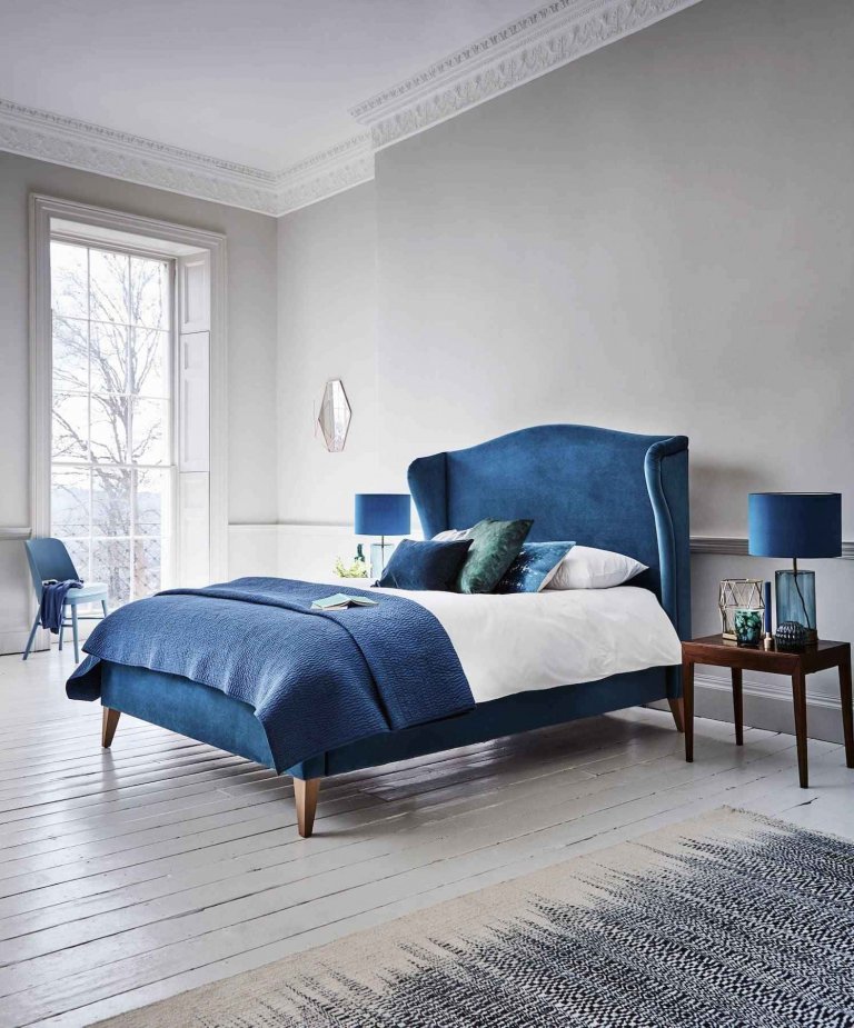 Modrá barva obecně je jako stvořená do ložnice. Podporuje totiž přirozené zklidnění a umí krásně naladit ke spánku. Snižuje totiž krevní tlak, zpomaluje tep i dýchání. Dokáže ale také podpořit kreativitu. Proto se často objevuje na stěnách kanceláří a pracoven. Do kuchyní se však nehodí, jelikož snižuje chuť k jídlu. V menší míře může najít své uplatnění v obývacím pokoji.