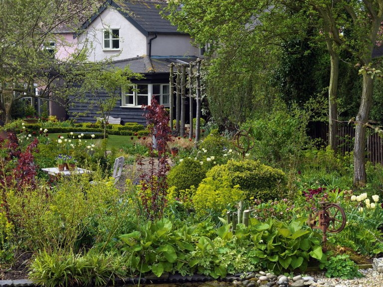 Když Corrine a John Laytonovi stáli před zahradou plnou udusané země, rozhodli se, že se s ní nebudou mořit. „Země byla tak nepoddajná a plná kamení, že do ní nešlo ani kopnout. Vůbec nic tu nerostlo a celý pozemek působil dost neutěšeným dojmem. Nejjednodušším řešením proto bylo celou zahradu zasypat,“ popisují manželé ve své čtvrt akrové zahradě, ze které je krásný výhled do krajiny anglického Essexu. Dnes leží tuny nepoužitelné země pohřbené pod třemi širokými terasami, které se zvedají za viktoriánským domem, ve kterém Laytonovi žijí. „Zahrada byla původně plochá a rovná,” vysvětluje Corrine. „Z přebytku hlíny jsme vyrobili terasy a tím se naše zahrada rozdělila do jednotlivých zón.“ Nechybí ani malý rybníček, který dodává zahradě to správné kouzlo.